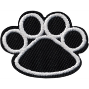 This cut out to the shape of the design Black Paw iron-on / sew-on patch measures 2.125 inches by 1.75 inch.