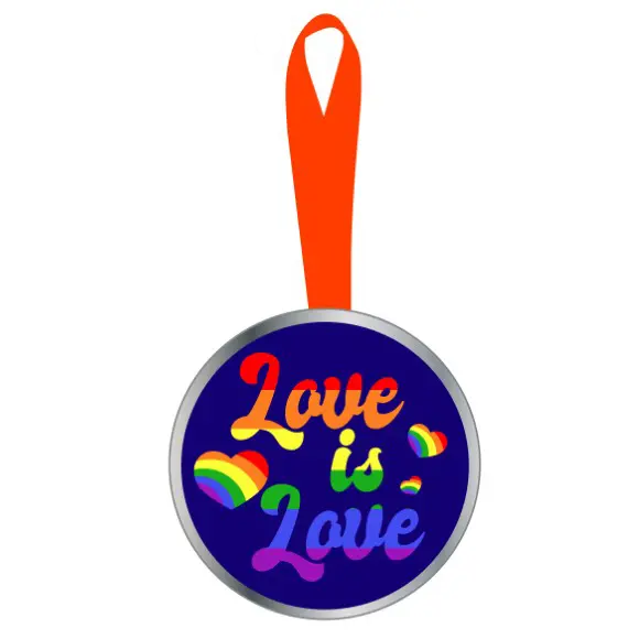 Love is Love Dome Ornaments come on a red ribbon. Backside of ornament is smooth, image size is a domed finish.