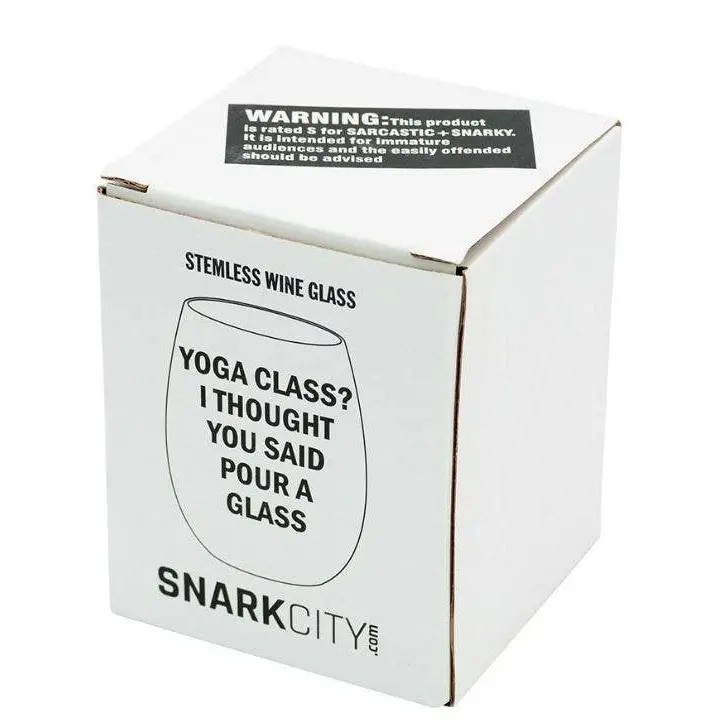 Stemless wine glass is 15 oz and comes in a white gift box.