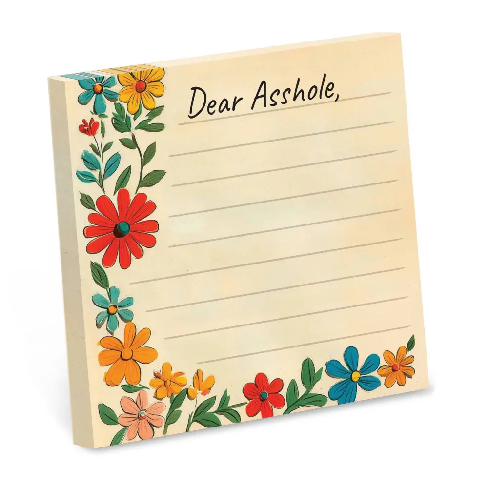Elevate your note game with our "Dear Asshole" sticky note, featuring vintage-inspired charming floral illustrations! This sticky note pad is perfect for those moments when you need to express your thoughts with a blend of sass and style.