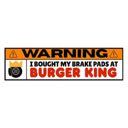 Warning! I Bought my Brake Pads from BK: Bumper Sticker