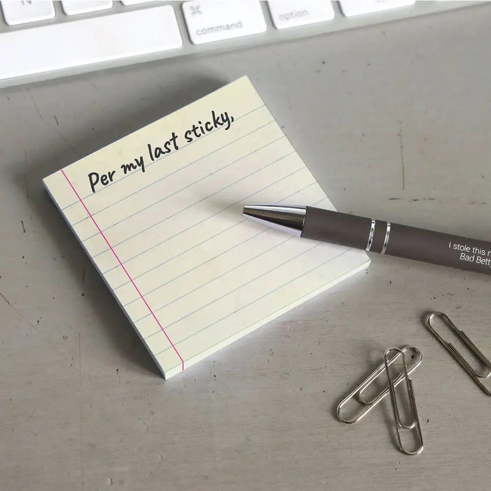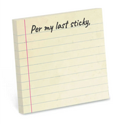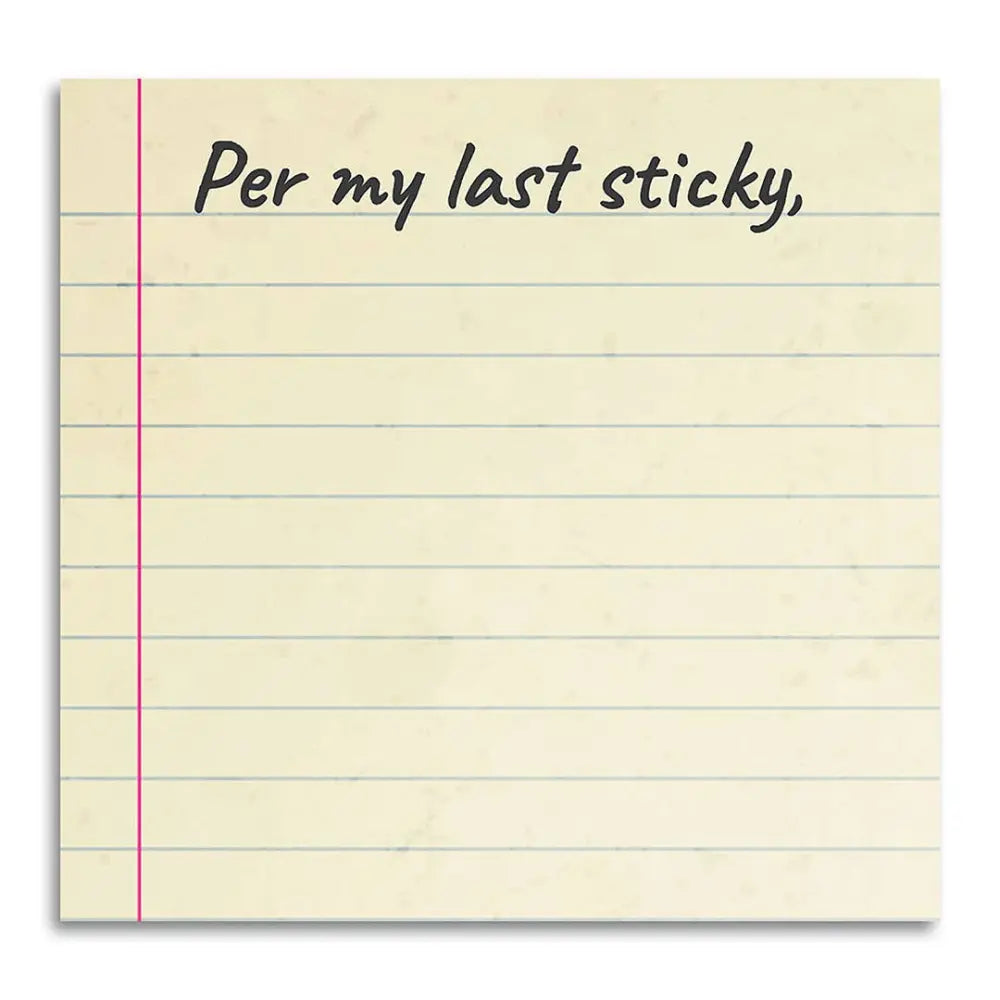 Meet your new office essential: the 'Per My Last Sticky' notepad– because sometimes people need a second (or third) reminder! Whether you’re dealing with a forgetful coworker, reminding your boss (again), or managing your chaos, these notes add a hilarious twist to your sticky reminders. Ideal as a gag gift for colleagues, friends, and family, this pad ensures your messages stick, even if your patience doesn't.