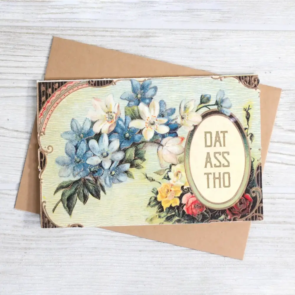 A funny vintage-inspired greeting card. "Dat Ass Tho"