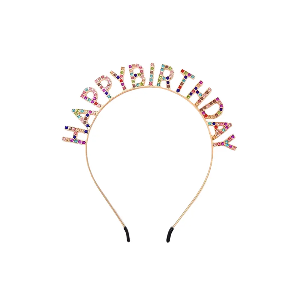 HAPPY BIRTHDAY Rhinestone Headband: Gold/Multi