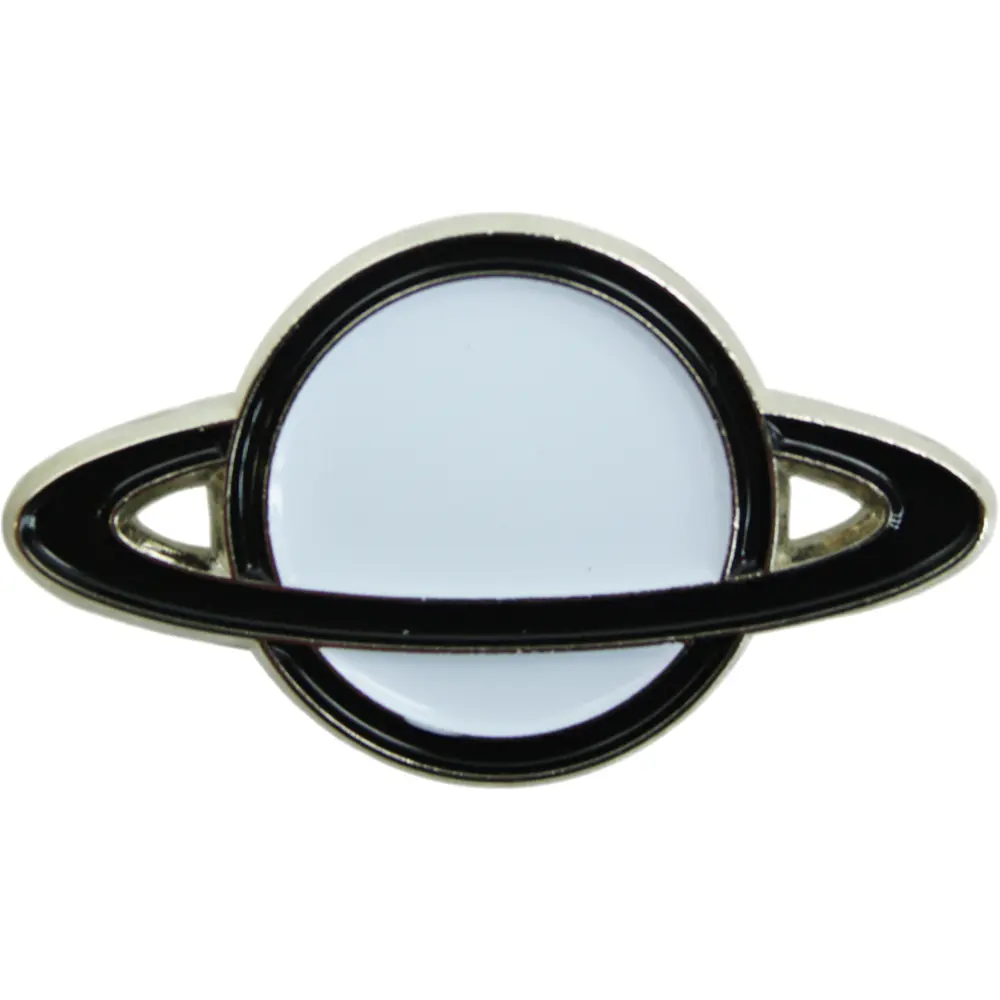 Add a celestial touch to your accessories with the Saturn in White Enamel Pin!