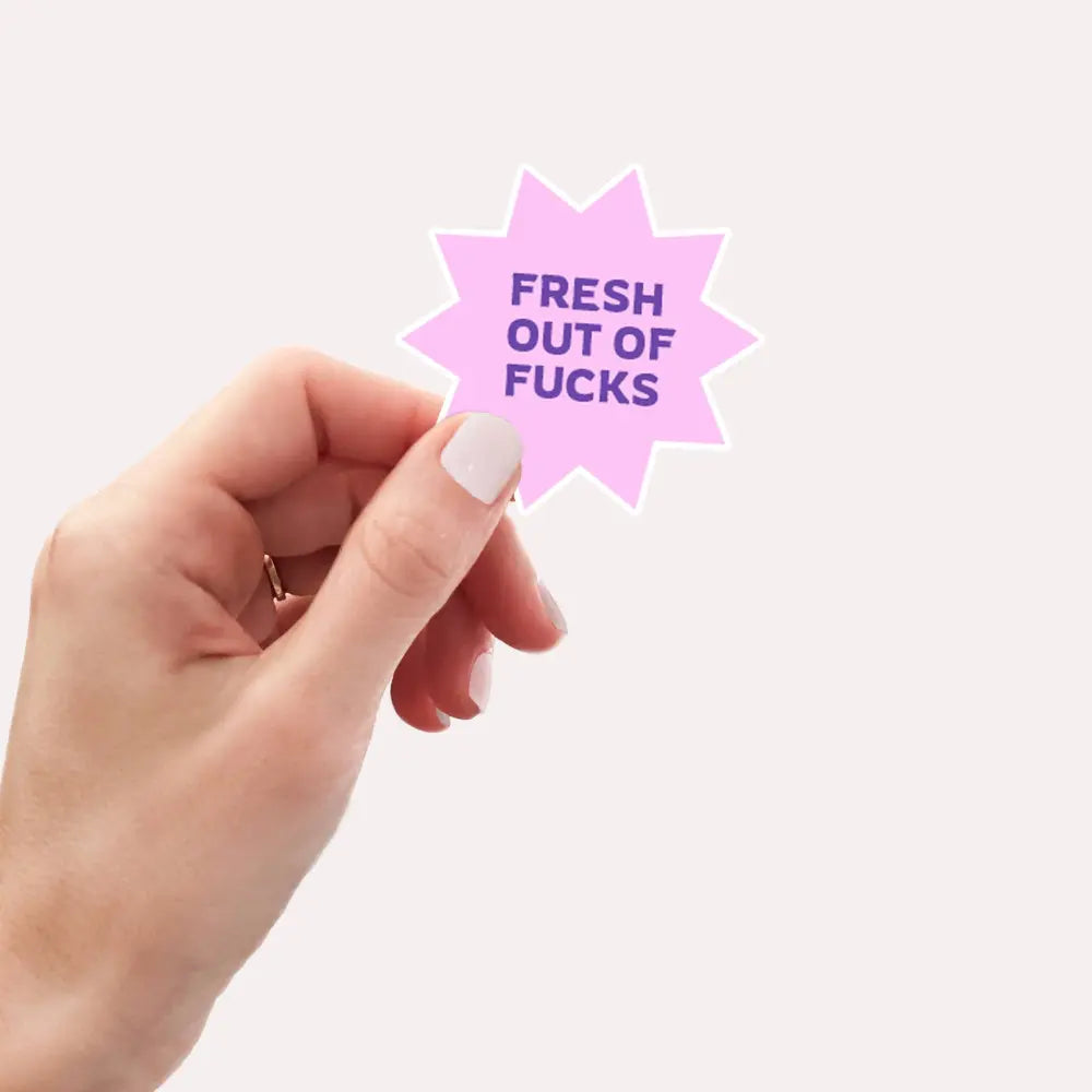 Fresh Out of Fucks Sticker measures 2 x 2 inches