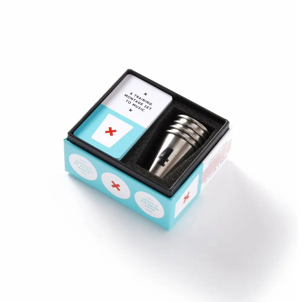 ⢠Finally a way to drink & watch tv (competitively). ⢠Includes 100 game cards (aka reasons to drink). ⢠Comes with four numbered stainless steel shot glasses. ⢠Game instructions are provided (because it would be pretty mean not to). ⢠Box measures 4.6" wide by 4.1" tall (and 2.1" deep if you're counting).