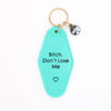 Because we know you lose your keys often. Hey, where are they now?? This Bitch Don't Lose Me Motel Keychain will serve as your daily reminder to not lose 'em. Our letters are embossed on the key tag, not printed. It won’t wipe away! This is on a teal motel style tag.