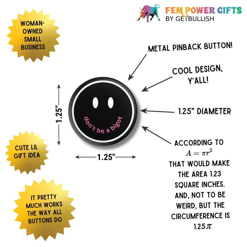 Don’t Be a Bigot 1.25’’ Button Pin in Black | Pride Feminist