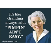 Ephemera presents our 'It's like Grandma always said, 'Pimpin ain't easy'' magnet. This rectangular magnet, with its brutally honest and hilarious quote, is a conversation starter. Place it on your fridge, locker, or any magnetic surface.